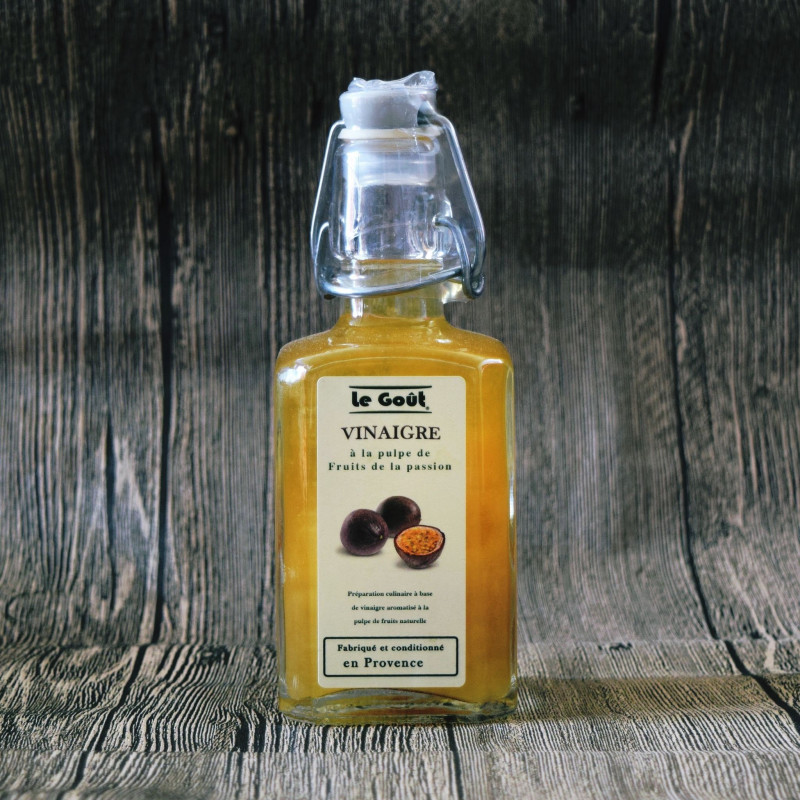 Ingrédients: vinaigre cristal 8°, pulpe de Fruit de la Passion 42%, sucre.