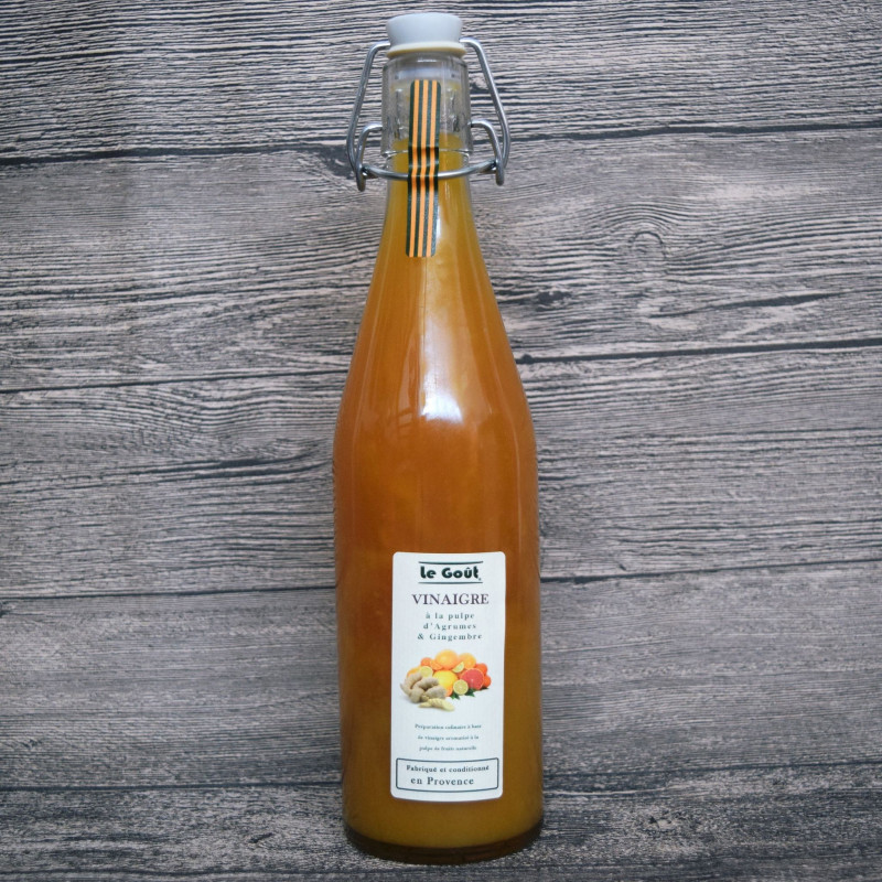Pendant ce temps faire une marinade avec le vinaigre agrumes-gingembre, l’huile d’olive, sel et poivre.